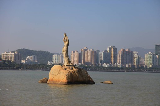 在聆聽導(dǎo)游關(guān)于漁女的傳說中,來到了香爐灣畔,親臨觀賞珠海漁女像----她領(lǐng)戴項(xiàng)珠,身掮魚網(wǎng),褲腳輕挽,雙手高高擎舉著一顆晶瑩璀璨的珍珠,帶著喜悅而又含羞的神情,向世界昭示著光明,親眼目睹使人覺得比傳說更加優(yōu)美,漁女像與情侶路已經(jīng)成為珠海的象征!